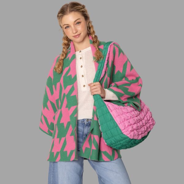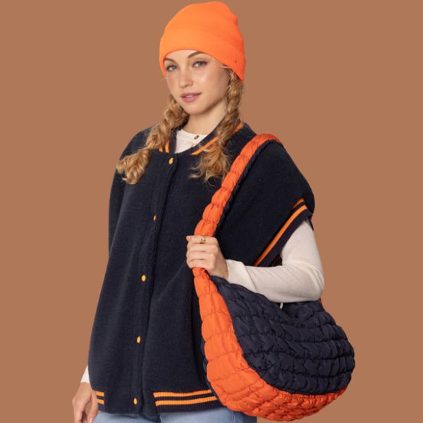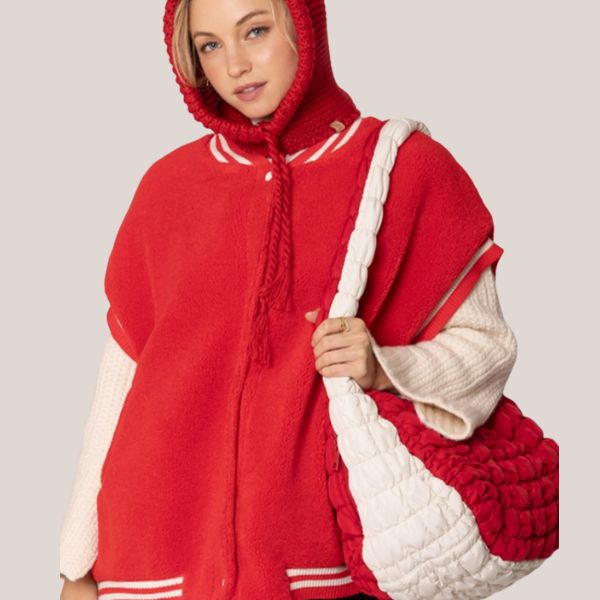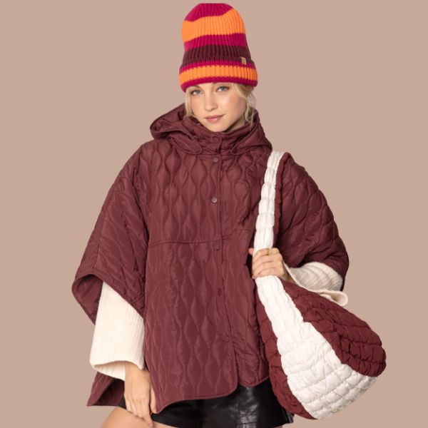 Burgundy and Ivory Puffer Bag- AA7005BIB