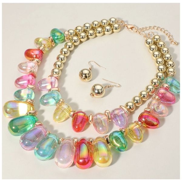 Add a touch of ethereal magic to your jewelry collection with this Beaded Double-Layered Necklace Set. Featuring clear, colorful  beads that catch and reflect the light, this set offers an elegant and charming glow that complements any skin tone.