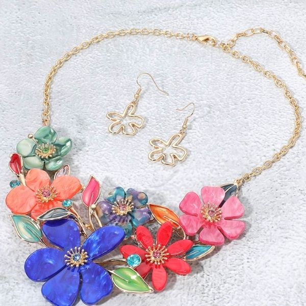 Brighten up your accessory collection with our Floral Statement Necklace Set. Featuring a stunning "mix colors" palette, this bib-style necklace is designed with intricate metal and acetate floral charms that pop against any outfit. Whether you're dressing up for a spring brunch or adding a focal point to a casual look, this set provides a bold, artistic flair.