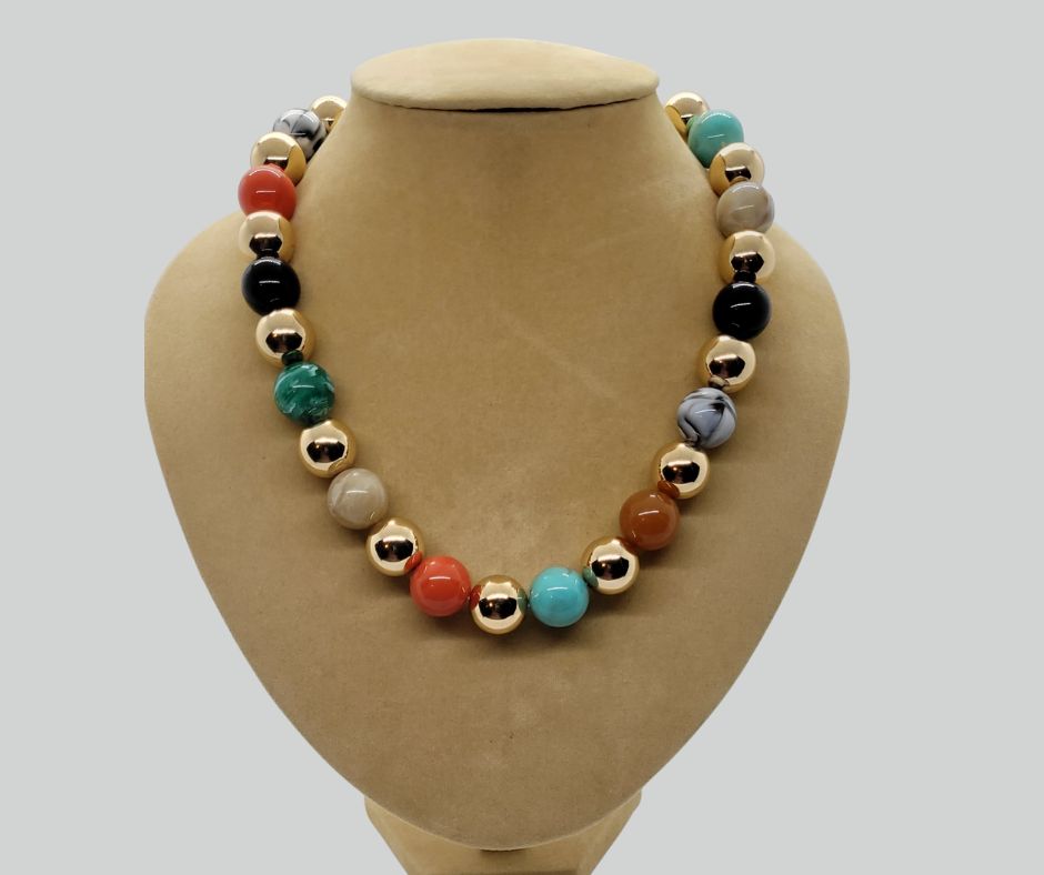 Add a pop of color to your wardrobe with our Colorful Bead Ball Necklace Set. This playful set features fun, vibrant beads accented with a touch of gold for that extra sparkle. Perfect for adding a lively twist to any outfit, this set is designed for those who love to stand out with their accessories. Whether you're attending a casual gathering or a festive occasion, these pieces will surely make a statement.