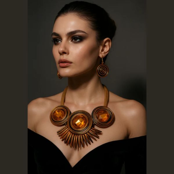 Fashion Deep Amber Wire Necklace Set - AN5081B