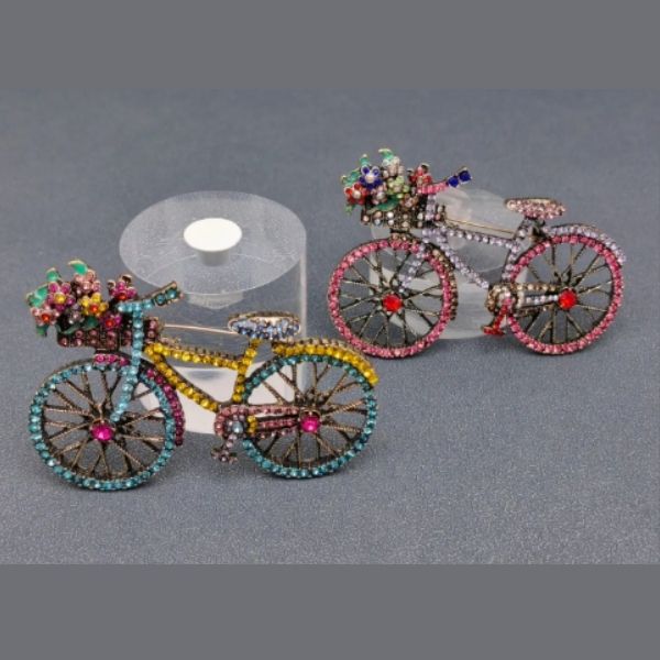 Add a touch of sparkle and charm to your style with this dazzling  trio designed to bring elegance, whimsy, and  personality to any look. This Bicycle is beautifully detailed with shimmering rhinestones set in durable base metal, creating the perfect balance of shine and strength.