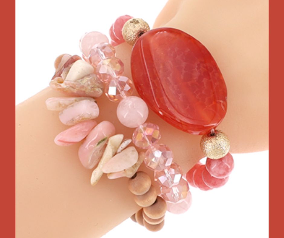 Adorn your wrist with elegance with our Agate Beaded Stretch Stackable Bracelet. Designed in beautiful pink colors, this accessory is a harmonious blend of gemstone, crystal, and beads. It's not just a bracelet; it's a statement piece that brings pleasure and style to any ensemble. Whether worn alone or stacked with other bracelets, it embodies a natural beauty that elevates your everyday look.