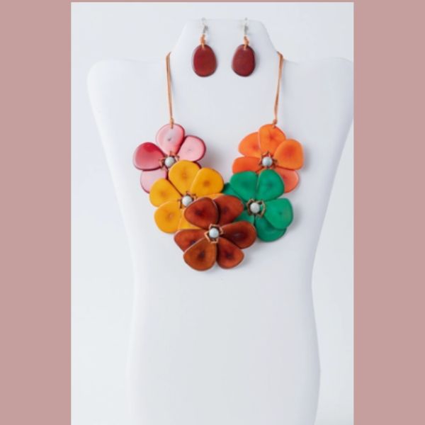 Crafted with love, this handmade piece makes for an elegant everyday accessory. Tagua, a plant-based vegetable sourced from South American palm trees, is not only sustainable and durable but also exceptionally beautiful. This exquisite necklace comes with matching earrings, and features an adjustable cord slider for a perfect fit. This work of art is truly a must-have!