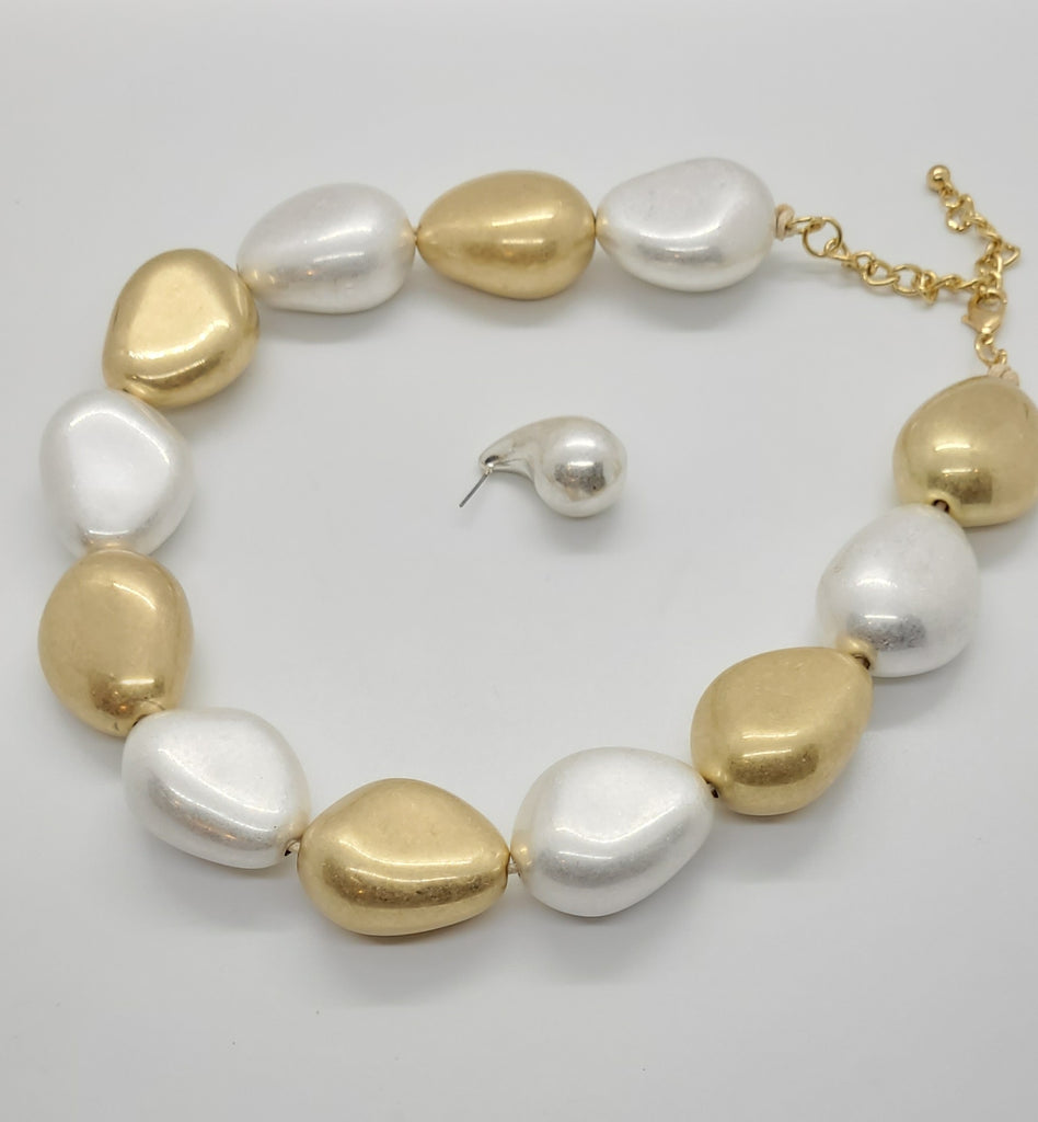 Fashion Silver and Gold Beaded Necklace Set - AN5002